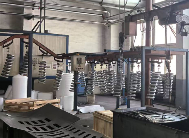 如果采用喷涂工艺,问题就来了:喷枪打出的漆雾轻飘飘的,碰到弹簧表面会反弹,根本钻不进那些细小的缝隙里去。缝隙内部依然是裸露的金属,弹簧防腐也就成了一句空话。